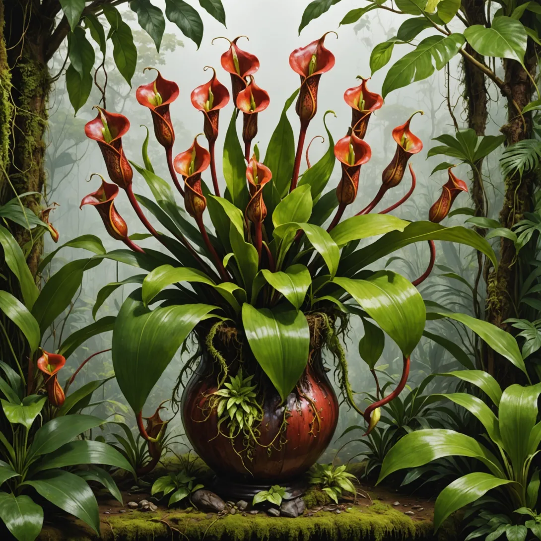 - Биологические особенности: Его кувшинчики могут достигать внушительных размеров, а цвет и запах привлекают жертв.